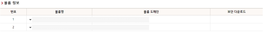 볼륨 정보 서비스에 포함된 볼륨의 정보를 보여 줍니다. 볼륨을 선택 할 경우 해당 볼륨의 도메인 정보 및 Origin 정보를 확인 할 수 있습니다.