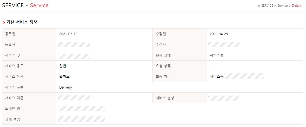 기본 서비스 정보 CDN 서비스의 등록/수정 정보 및 현재 상태에 대한 기본 정보를 확인 할 수 있습니다.