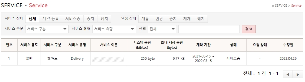 계약 정보 CDN 서비스의 계약 정보를 확인 할 수 있습니다.