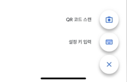 1. 소유하신 모바일 기기에 설치된 Goolge Authenticator 앱을 실행 하여 오른쪽 하단의 버튼을 클릭하여 QR 코드 스캔을 선택 합니다.
